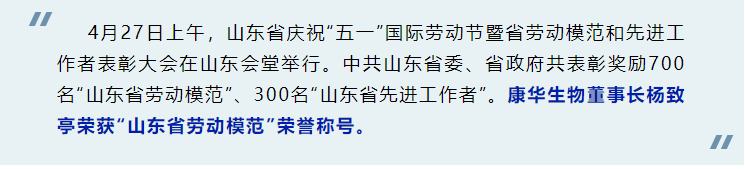 载誉归来 | 康华生物董事长杨致亭荣获“山东省劳动模范”荣誉称号!